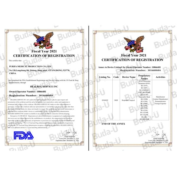 ≥95% Filtration efficiency against Non-Oil Particulates Fabric; Meeting All Requirements of CHINA Standard : GB2626-2019;